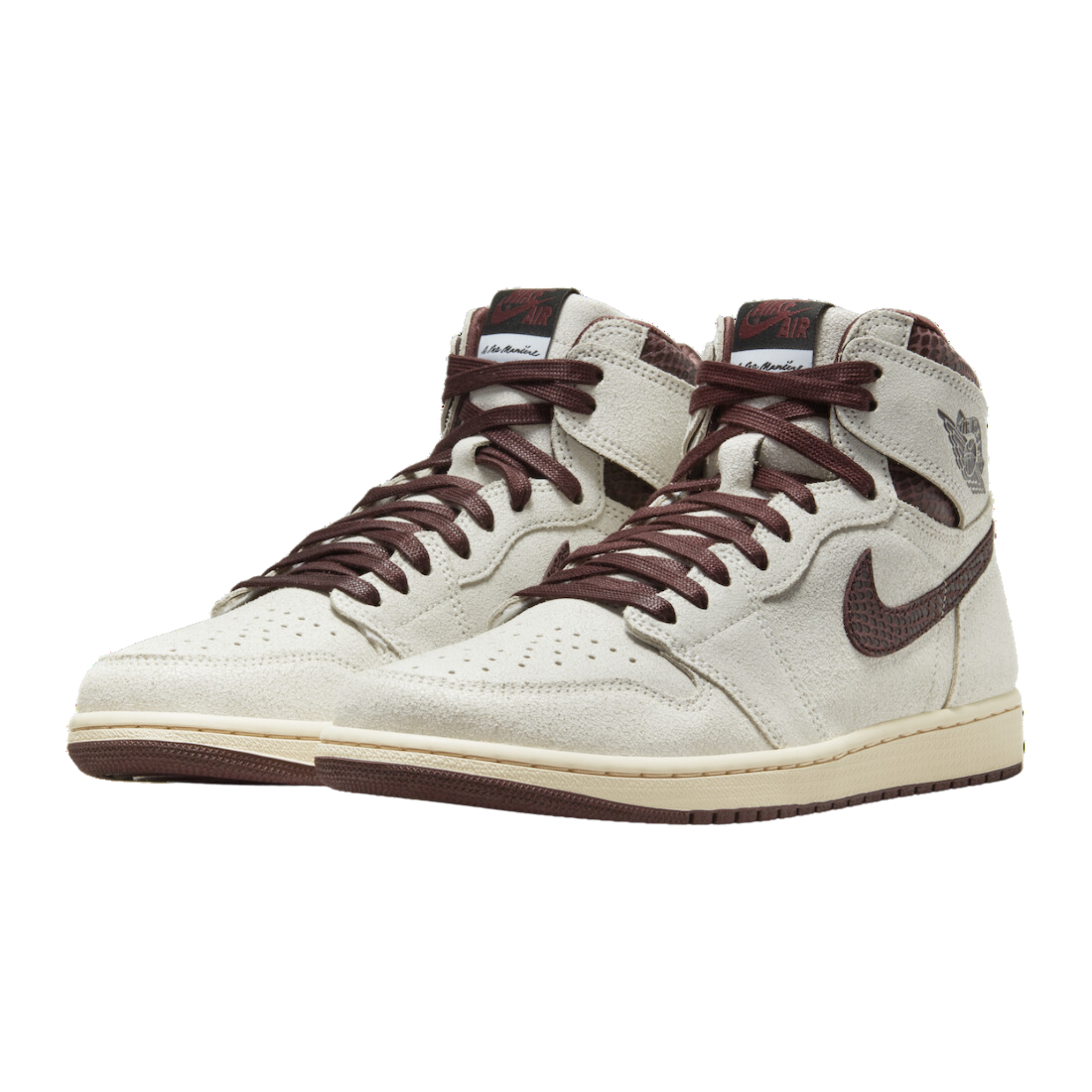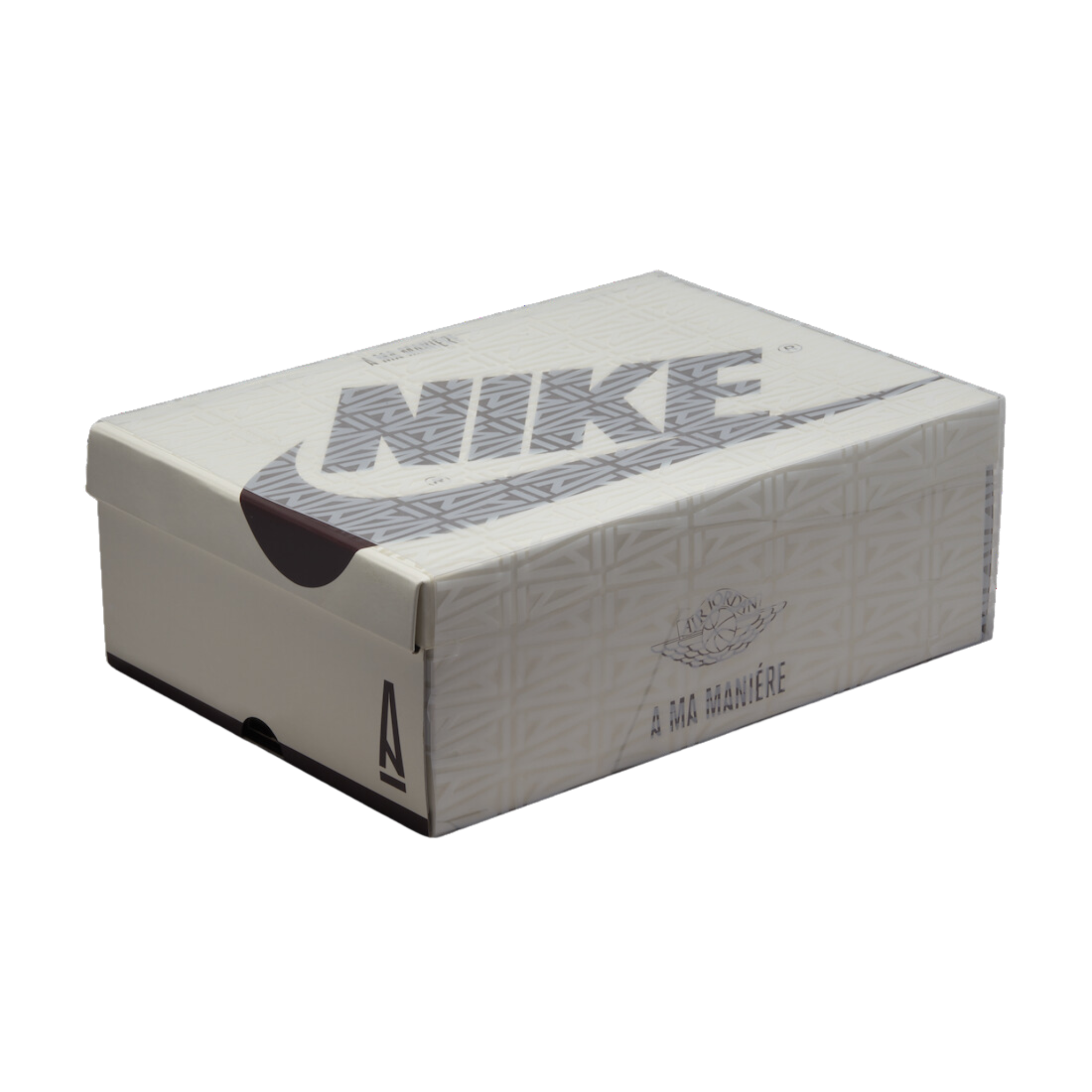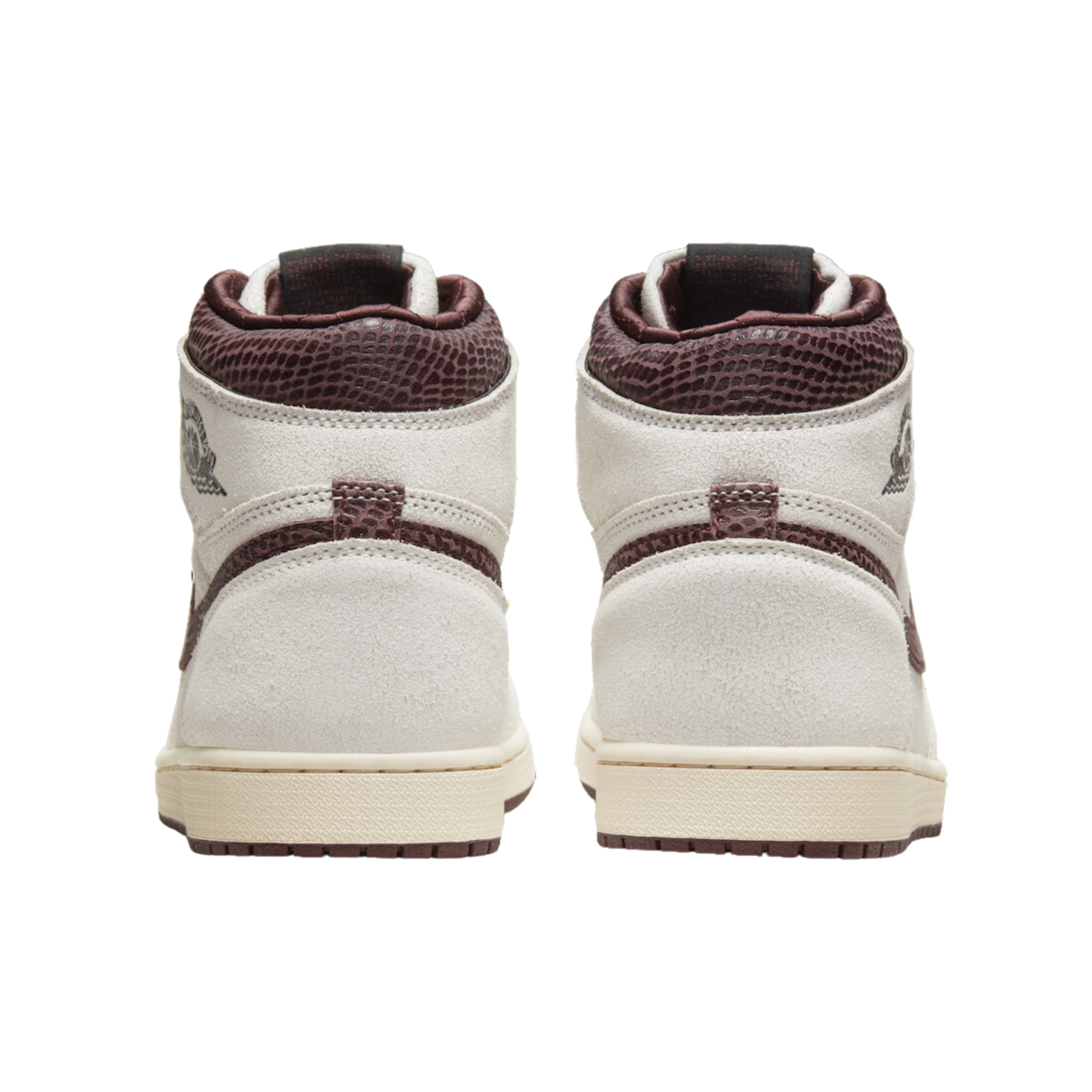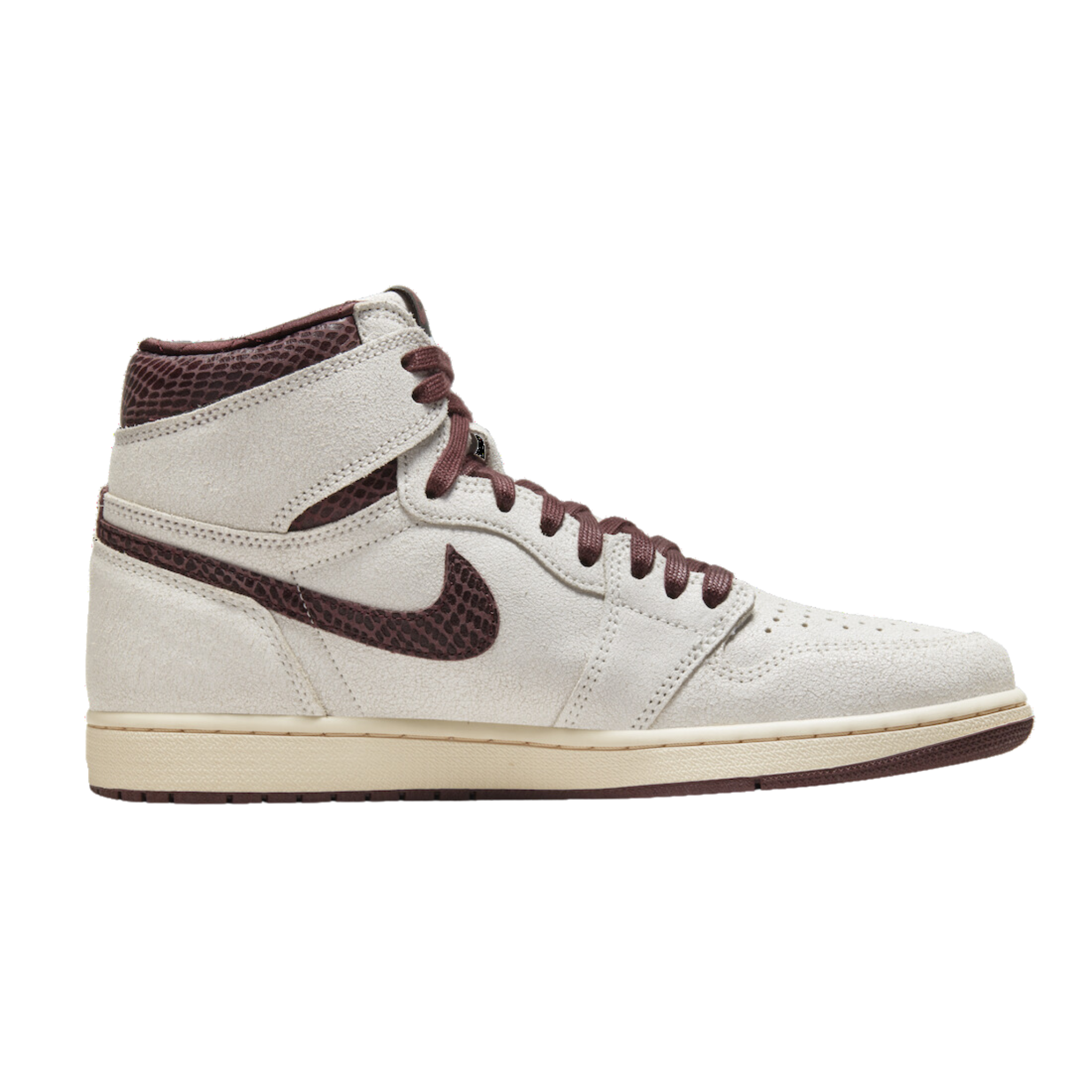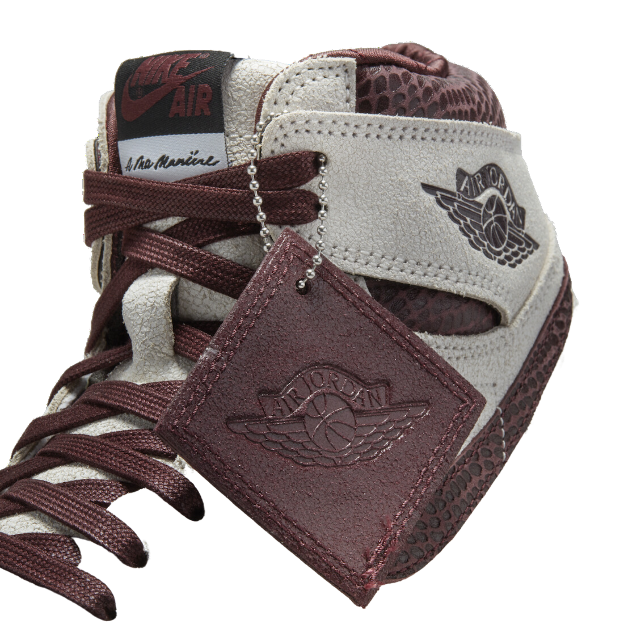 Premium cracked leather upper with burgundy reptilian-textural leather collars and Swooshes. Custom woven tongue, silky quilted lining and insole labels. Finally, the base has a yellowed sole which provides a vintage vibe to the design.