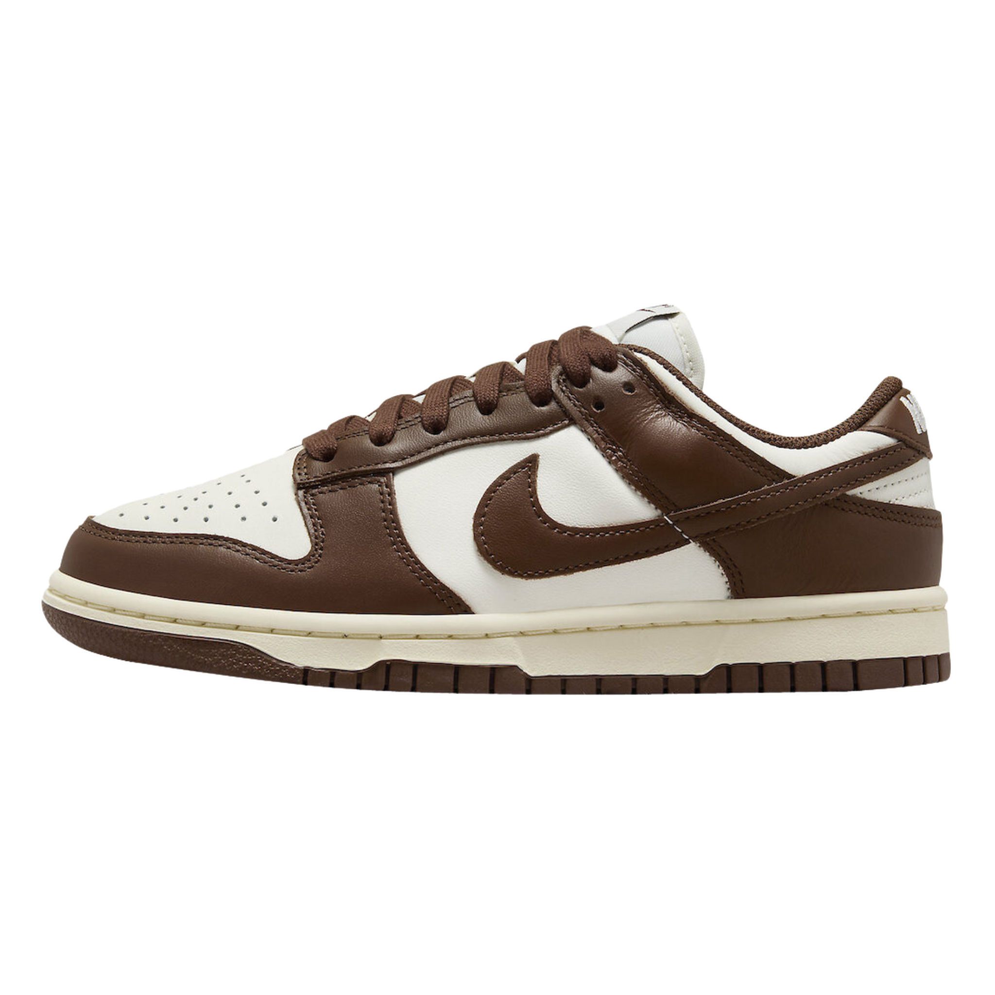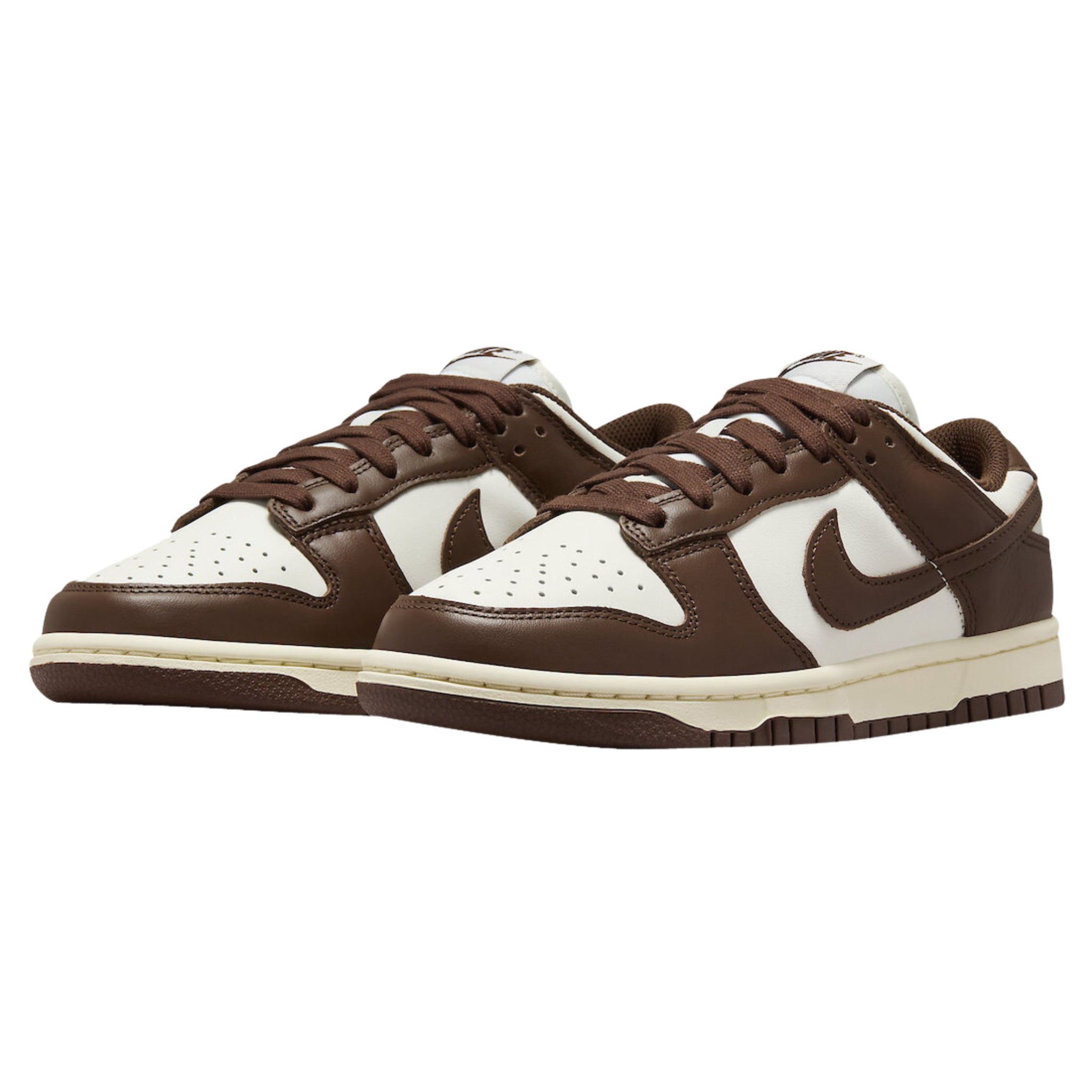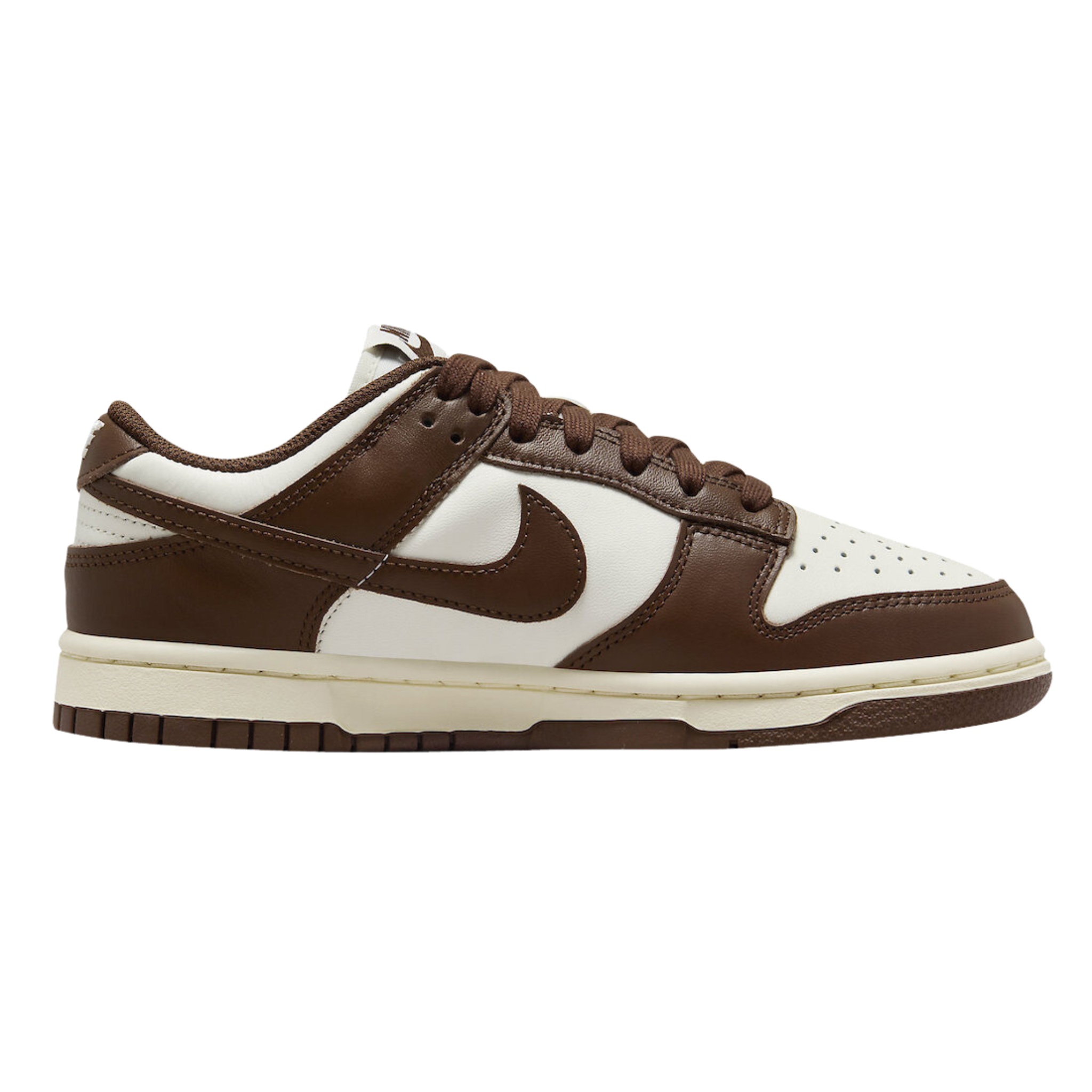 The Nike Women's Dunk Low 'Cacao Wow' is probably one of the best dunk low colorways this year. Featuring smooth leather on the upper, a white base with chocolate brown overlays and a color-matched Swoosh.