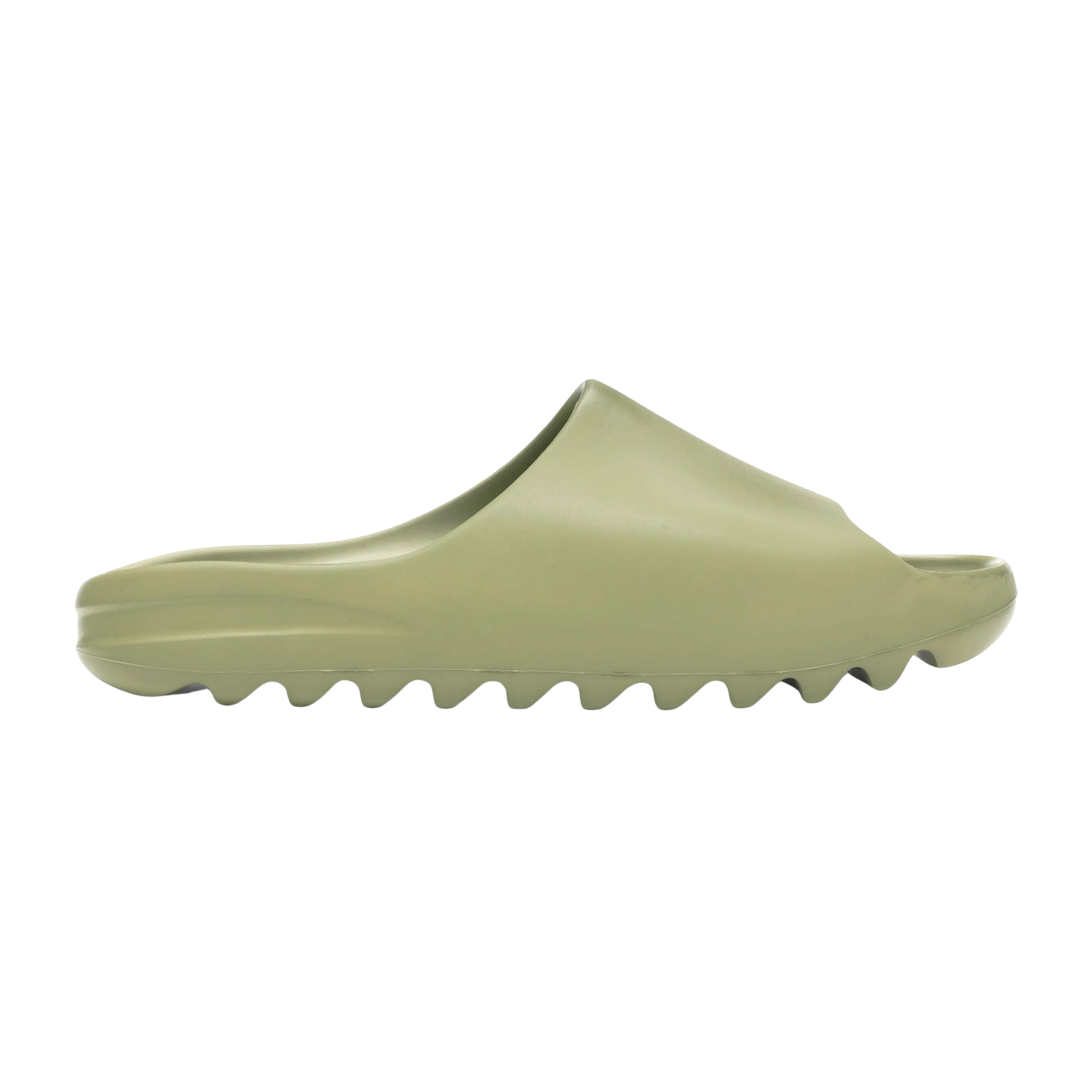 The 2022 re-release of the Yeezy Slide ‘Resin’ brings back one of the introductory colorways of the futuristic comfort sandal. The one-piece build features a pale green finish throughout the lightly textured exterior. Branding is confined to a tonal adidas logo on the soft footbed, while on the underfoot, there are deep horizontal ridges cut throughout the outsole, resulting in an aggressive sawtooth pattern that provides protection and grip.